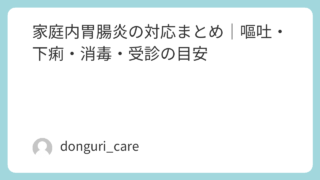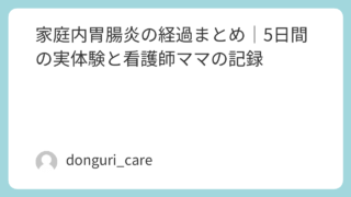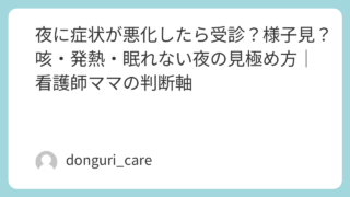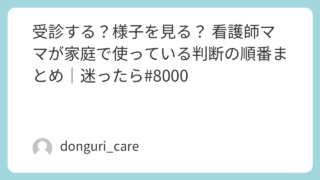 この記事は、子どもが体調を崩したときに「受診する?様子を見る?」と迷ったときのための家庭看護の総合ガイドです。下記から今の状況に近いものを選んでください。・嘔吐・下痢 → ▶︎ 胃腸炎対応まとめはこちら家庭内胃腸炎の対応まとめ|体験談・判断...