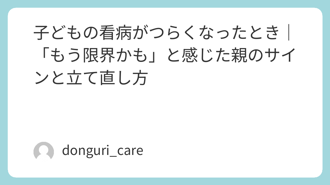 子どもの看病がつらくなったとき|「もう限界かも」と感じた親のサインと立て直し方