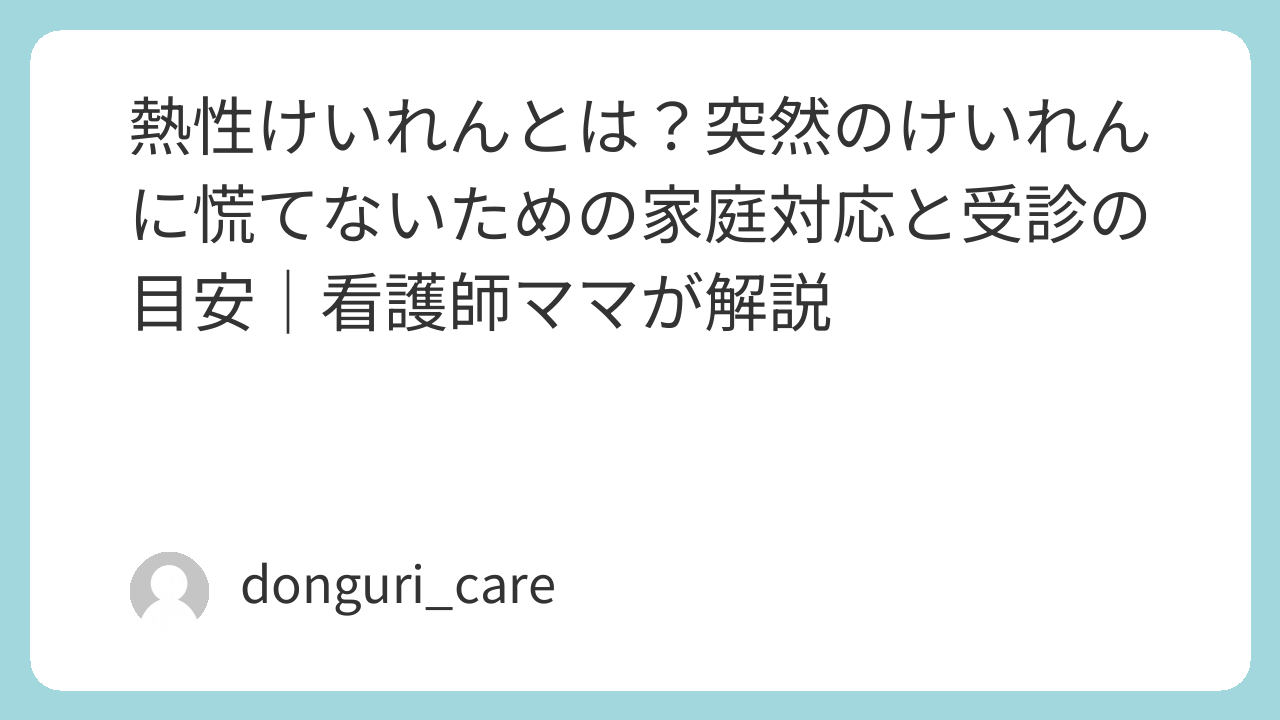 熱性けいれんとは?突然のけいれんに慌てないための家庭対応と受診の目安|看護師ママが解説