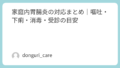 *関連記事|家庭内胃腸炎の対応まとめ|嘔吐・下痢・消毒・受診の目安